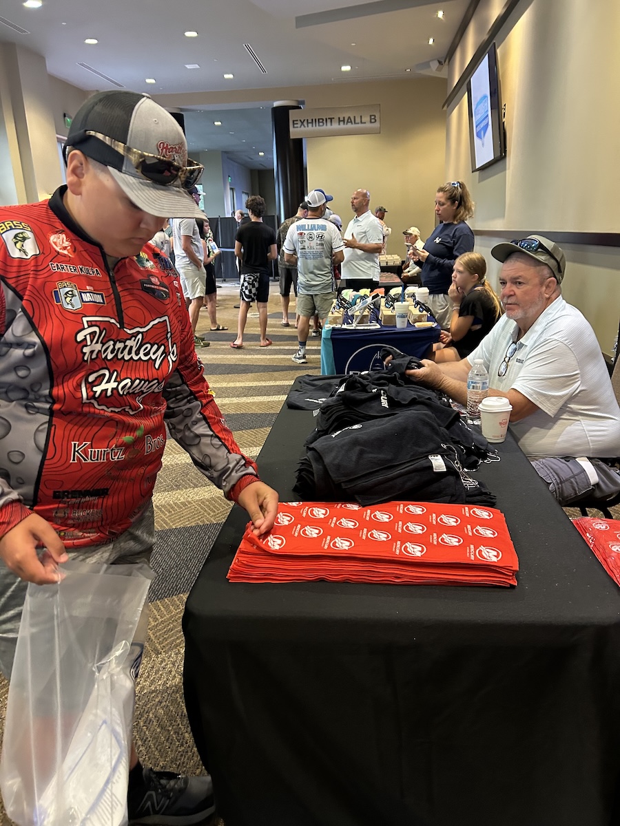 On Thursday, July 24th all the competitors were required to check-in and attend a briefing meeting. In addition, the anglers were treated with lots of free swag and goodies from the sponsors of the event. Here are some pictures from the check-in meeting. Click on an image to view larger image.