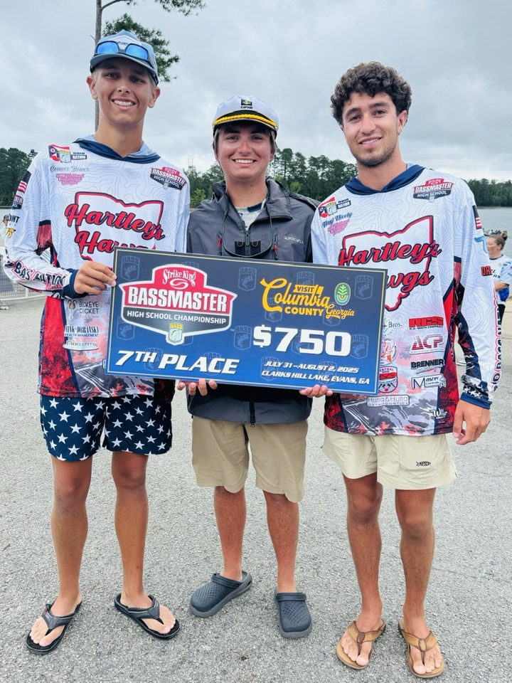 The senior duo of Connor and Hoyt competed in the 2025 Bassmaster High School National Championship held on Clarks Hill Lake. The boys made the final day cut and finished 7th in the nation out of a field of over 250 boats. They fished hard through tough hot (nearly 100 degree) and humid days. Way to go representing Ohio and the Hartley’s Hawgs!